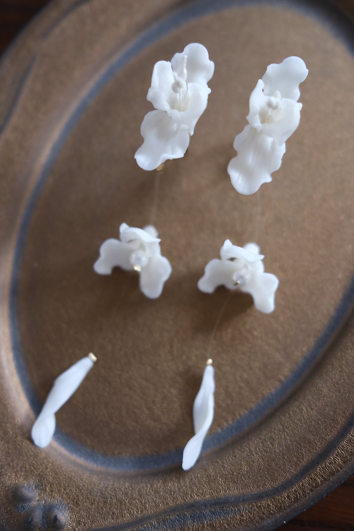 本物のお花をイメージし、不揃いの花びらを1枚1枚粘土で作ったperfumeシリーズのイヤーアイテム。