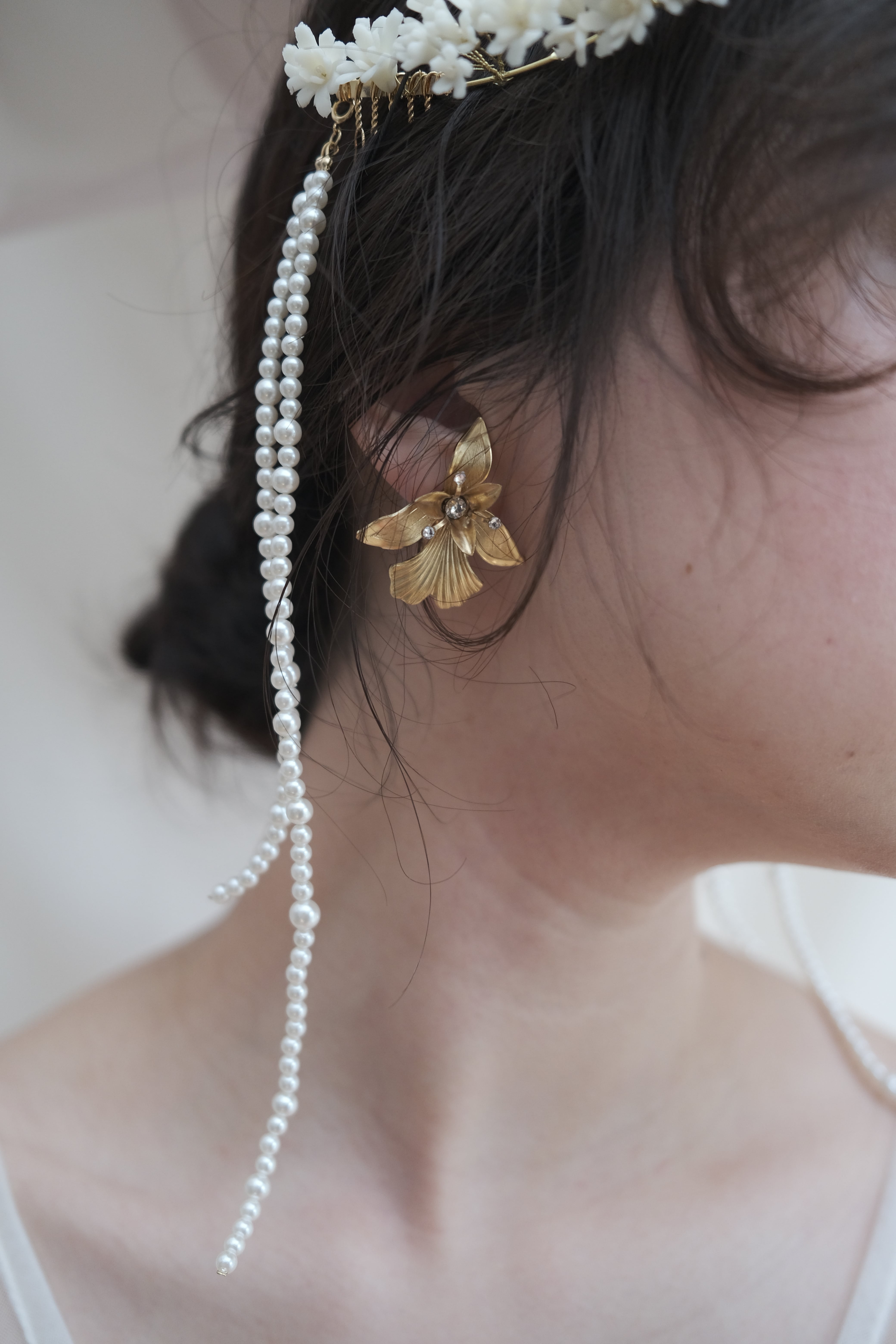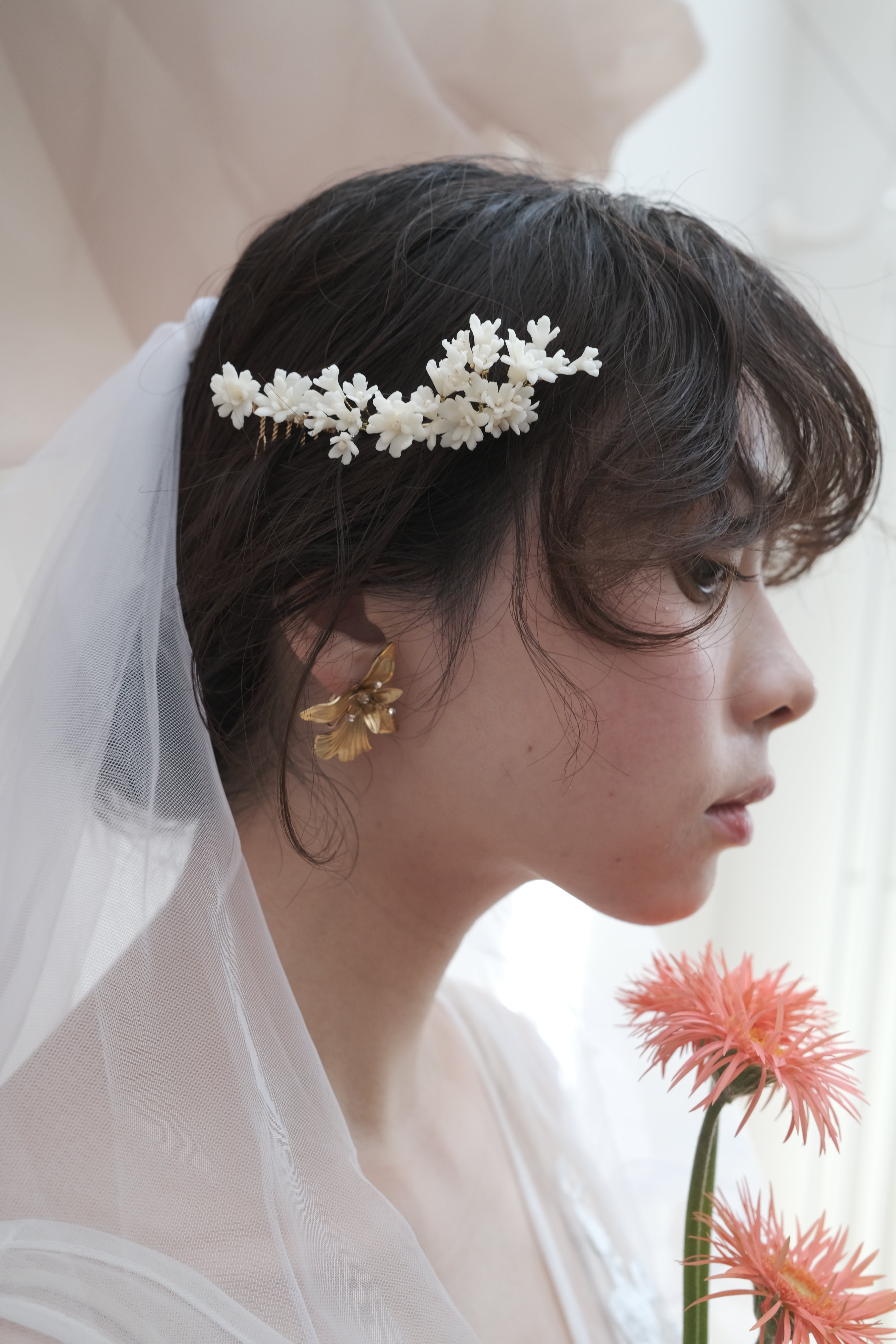 大ぶりすぎず、小さすぎず、ちょうど良い大きさなので、華やかなヘアスタイルにも邪魔をせず組み合わせやすいアイテムです。